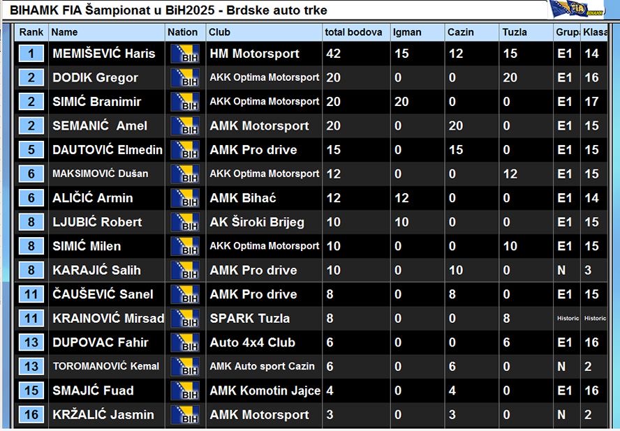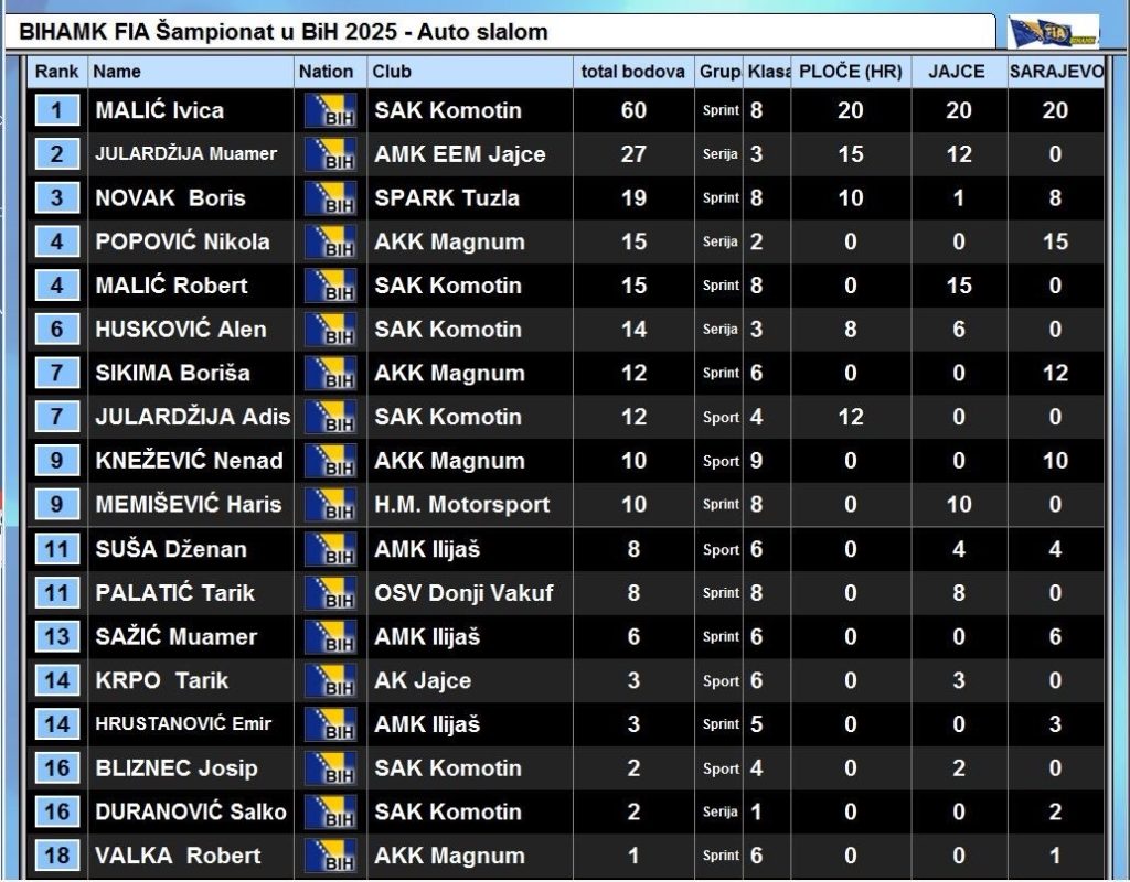 Ovom prilikom vam predstavljamo nezvanične rezultate disciplina A02 – Brdske trke i A09 – Auto slalom koje su vožene u BIHAMK – FIA Šampionatu u Bosni i Hercegovini.