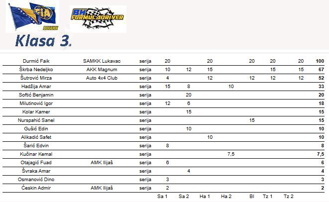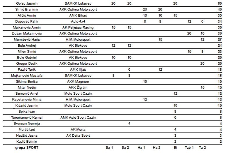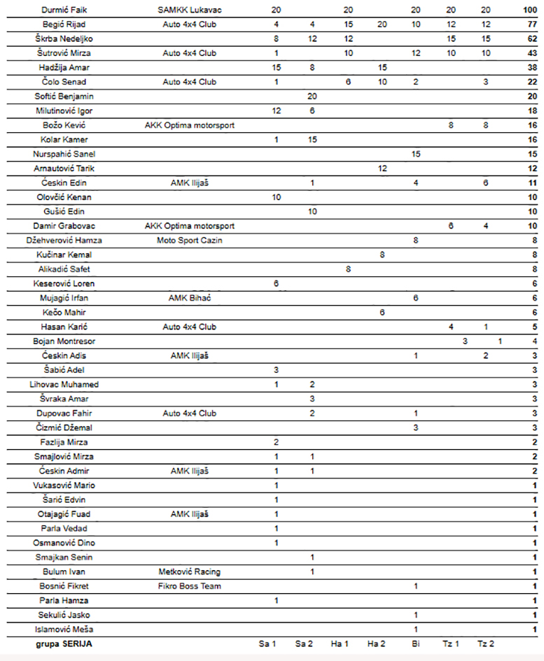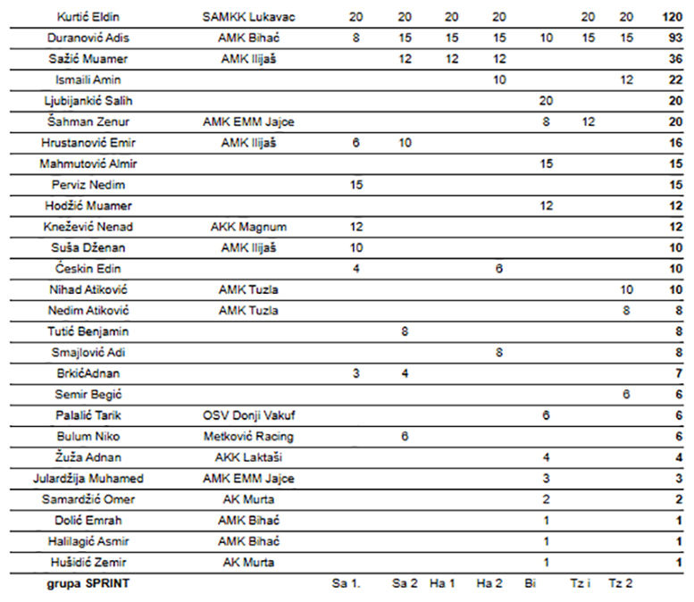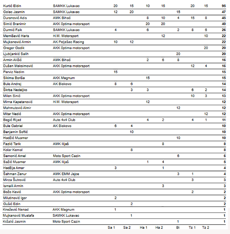 Nakon održanih 7 utrka u Sarajevu, Hadžiima, Bihaću i Tuzli objavljujemo preliminarne rezultate prije održavanja posljednje utrke u Klandaru koja će biti 11. i 12.10. ove godine.